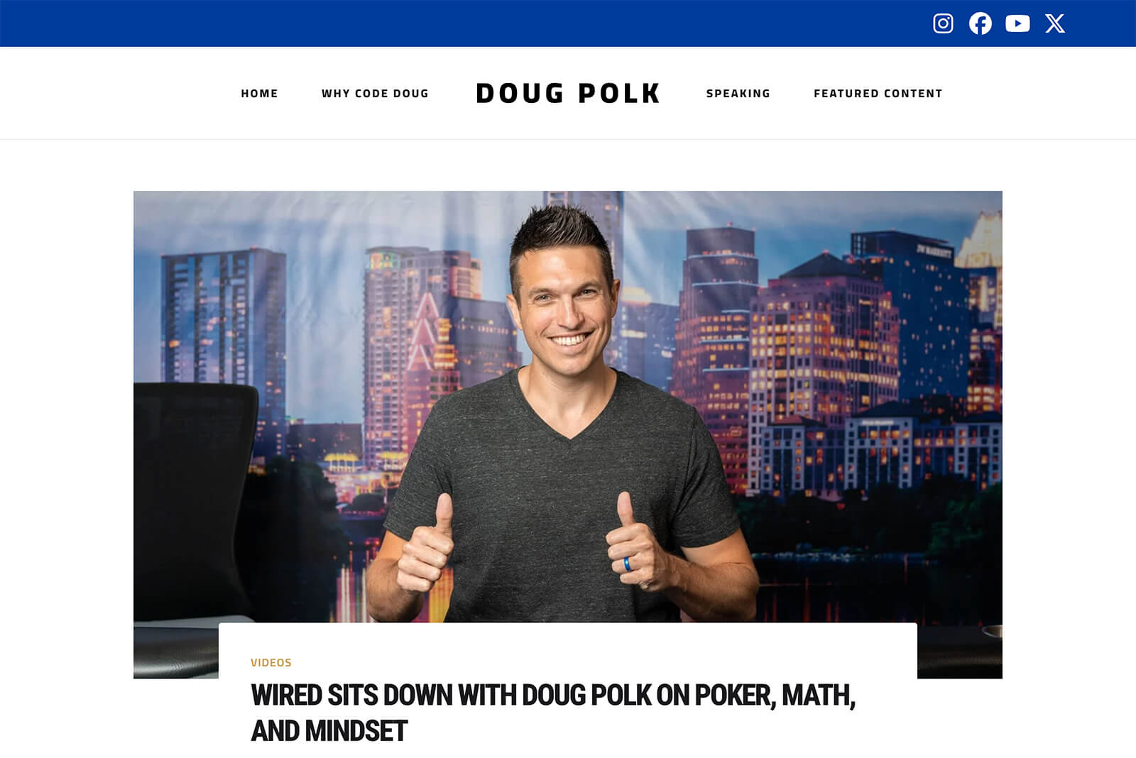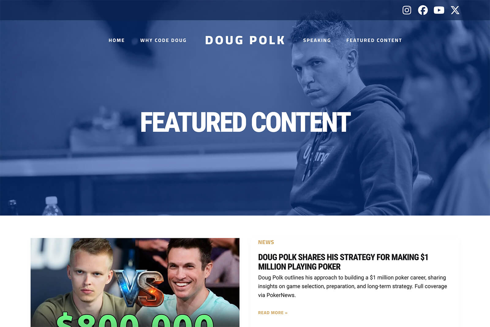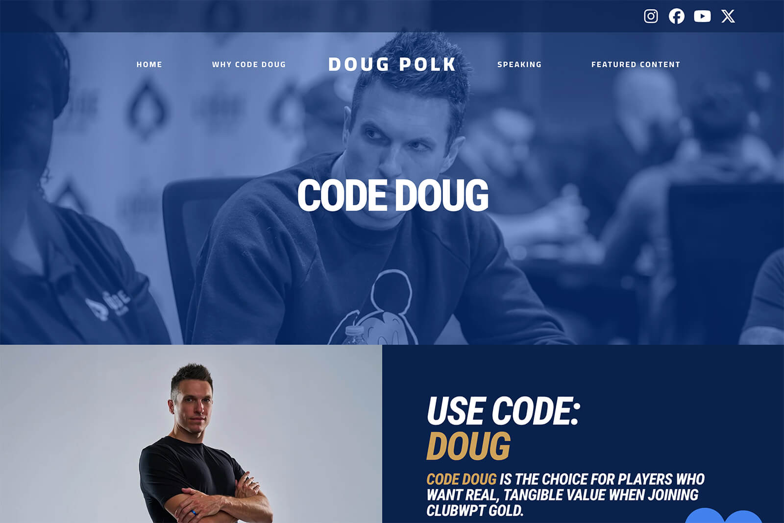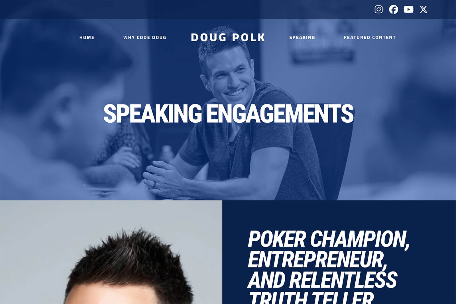 The platform was developed for Doug Polk, serving as a central hub for training products, events, blog content, and speaking engagements. The site needed to balance strong visual impact with speed, usability, and scalability.