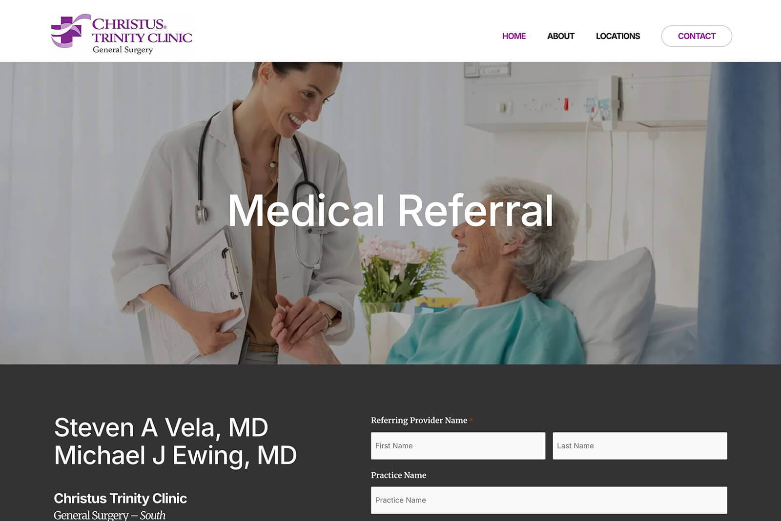 The platform was developed for CHRISTUS Trinity Clinic, serving as a central hub for patient information, provider details, and referral submissions. The site needed to balance professionalism, clarity, and usability while maintaining performance and accessibility.