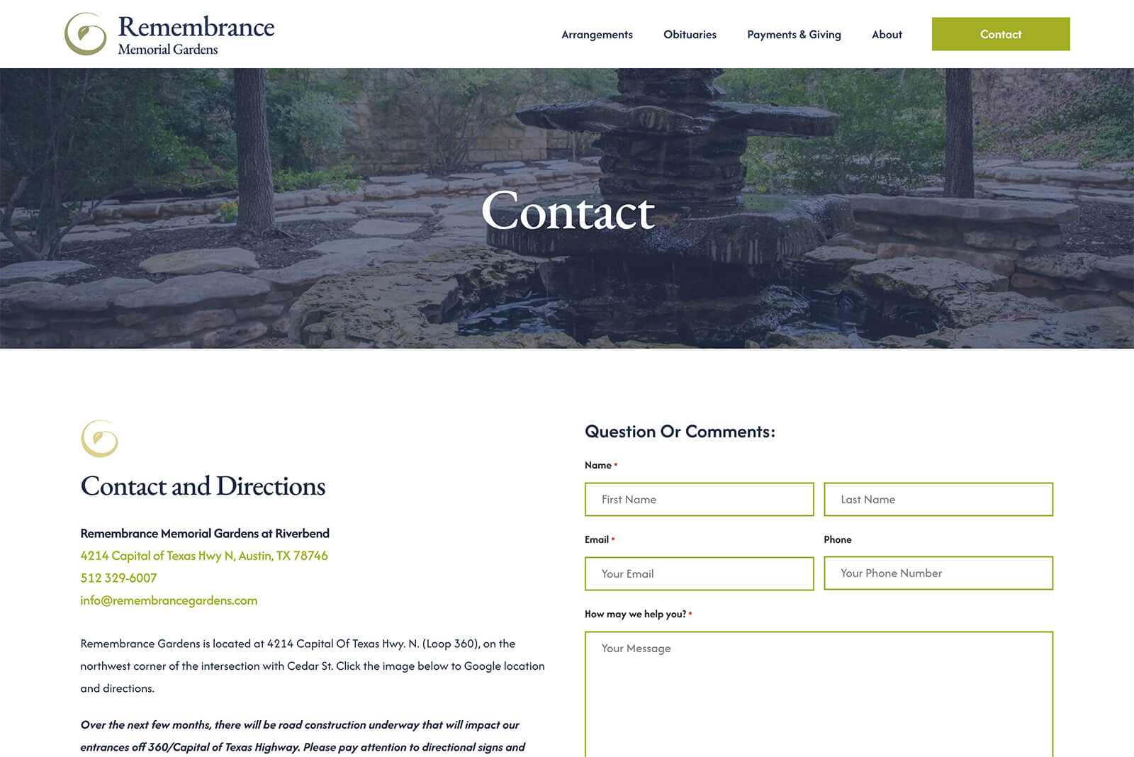 Austin Web and Design partnered with Remembrance Gardens to redesign their website into a modern, scalable WordPress platform that reflects the peaceful nature of their property while supporting real-world functionality for families and staff.