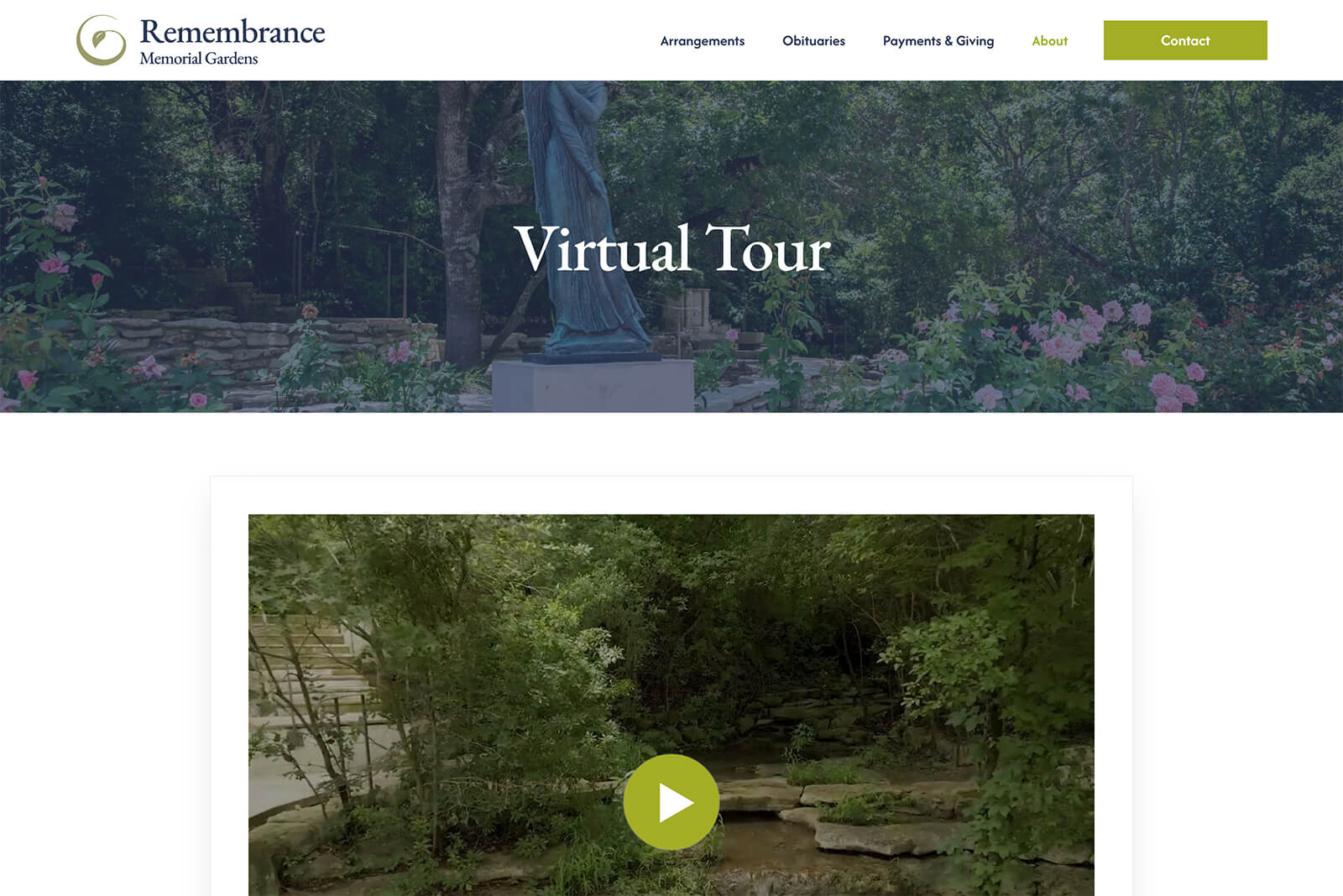 - Custom video popup block for showcasing the memorial gardens experience